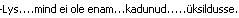 “Mõtlen läbi märgade silmade sulle ja ühe ainsa hingetõmbega valgub üks pisar mu huulile, tunnen soolast maitset…”